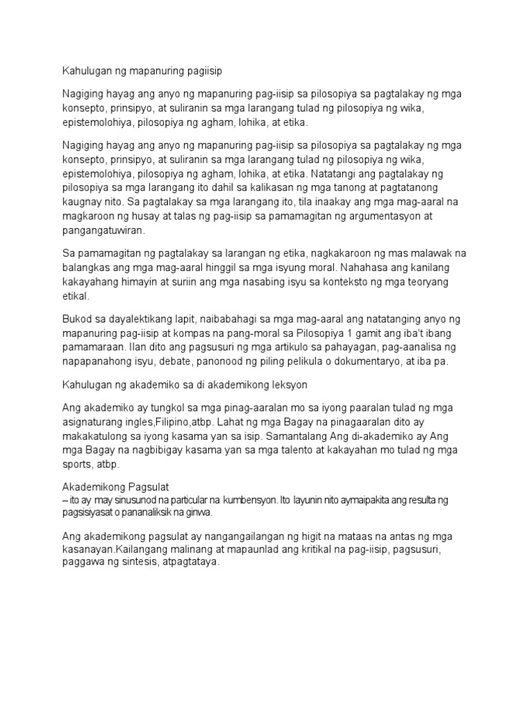 Kahulugan Ng Mapanuring Pagiisip Pdf
