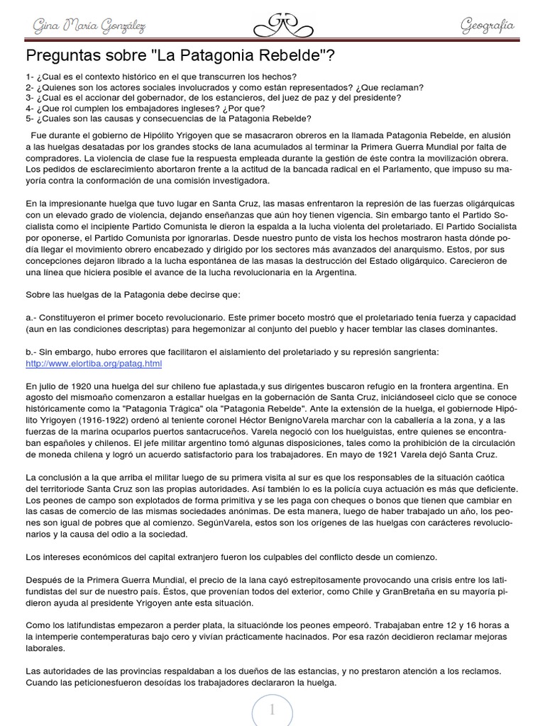 Opinión 03-12-2021 1448 - A cien años de los crímenes Los fusilados de la Patagonia Rebelde reclaman Justicia A cien años de los crímenes de la Patagonia Trágica un proyecto de ley busca declarar delitos de lesa humanidad a las matanzas ejecutadas para reprimir aquellas huelgas históricas en la provincia de Santa Cruz entre los años 1919 y 1922. El acto se realizó en el. La siguiente monografía titulada La Patagonia Rebelde.