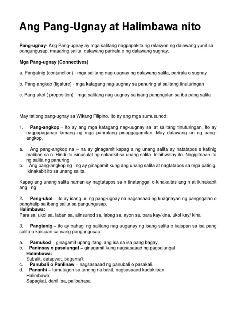 Kahulugan Ng Pang Ugnay Halimbawa